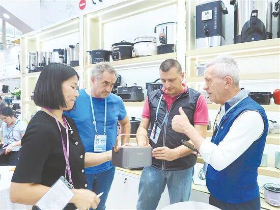 在江门市南光电器实业有限公司展位上,来自澳大利亚的客商一眼就相中了便携式加热便当盒,在多种款式中反复比对挑选。“本次展会我们共带来380余件展品,涵盖20多个新品类,包括咖啡机、空气炸锅、研磨机等,都是市场热门产品,实现了从‘单一品类’向‘综合家电’的延伸。”该公司总经理袁荣恩表示,“企业坚持每次参展都推新品,这不仅能吸引客户,更传递出企业持续健康发展的信号,也是外国客商看重的一点。”