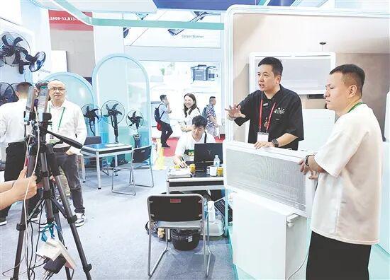 “今年我们持续推出节能类产品,上线了DC系列排气扇,还围绕节能环保不断优化产品设计,符合国内外越来越严格的能效标准,从展会反馈来看,客商都挺满意的。”江门金羚排气扇制造有限公司相关负责人陆瑞芳说,公司一直深耕排气扇细分赛道,在蓬江的生产基地侧重出口与定制化生产,主要面向东南亚、中东等市场,“这次广交会,我们每天能接待30—40批客商,不少人都留下了联系方式,意向客户比预期多。”