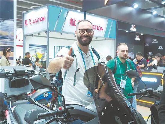 “这款摩托车做工非常精致,车型在我们国家非常流行。”在第138届中国进出口商品交易会(广交会)现场,来自哥伦比亚的客商Federico Londono跨上一款大排量摩托车,竖起大拇指赞赏道。不少外国客商在摩托车前“挪不开脚”“目不转睛”,与企业代表洽谈产品参数、价格、交货周期等细节,现场气氛热烈。